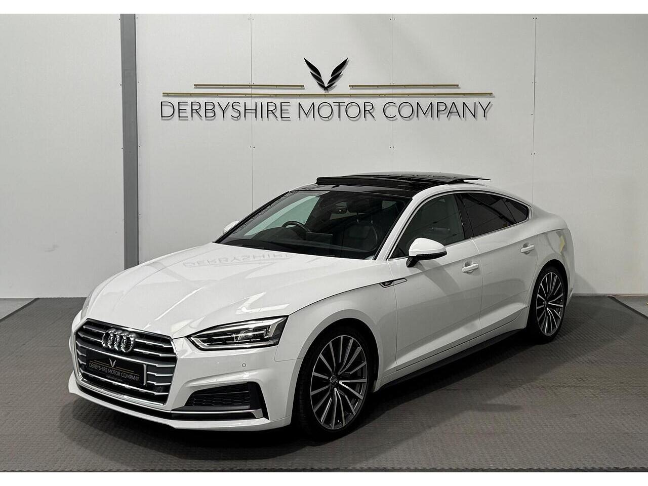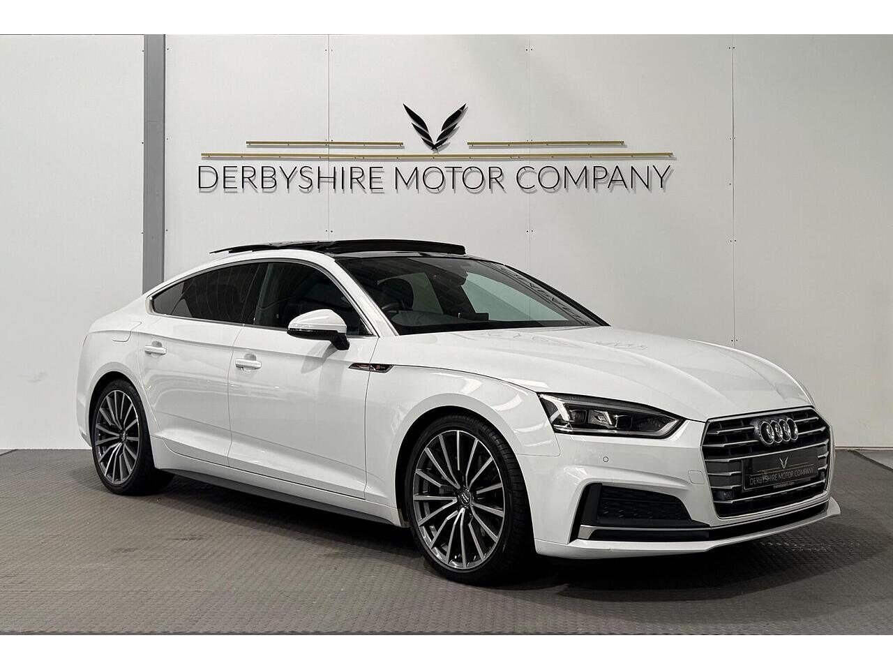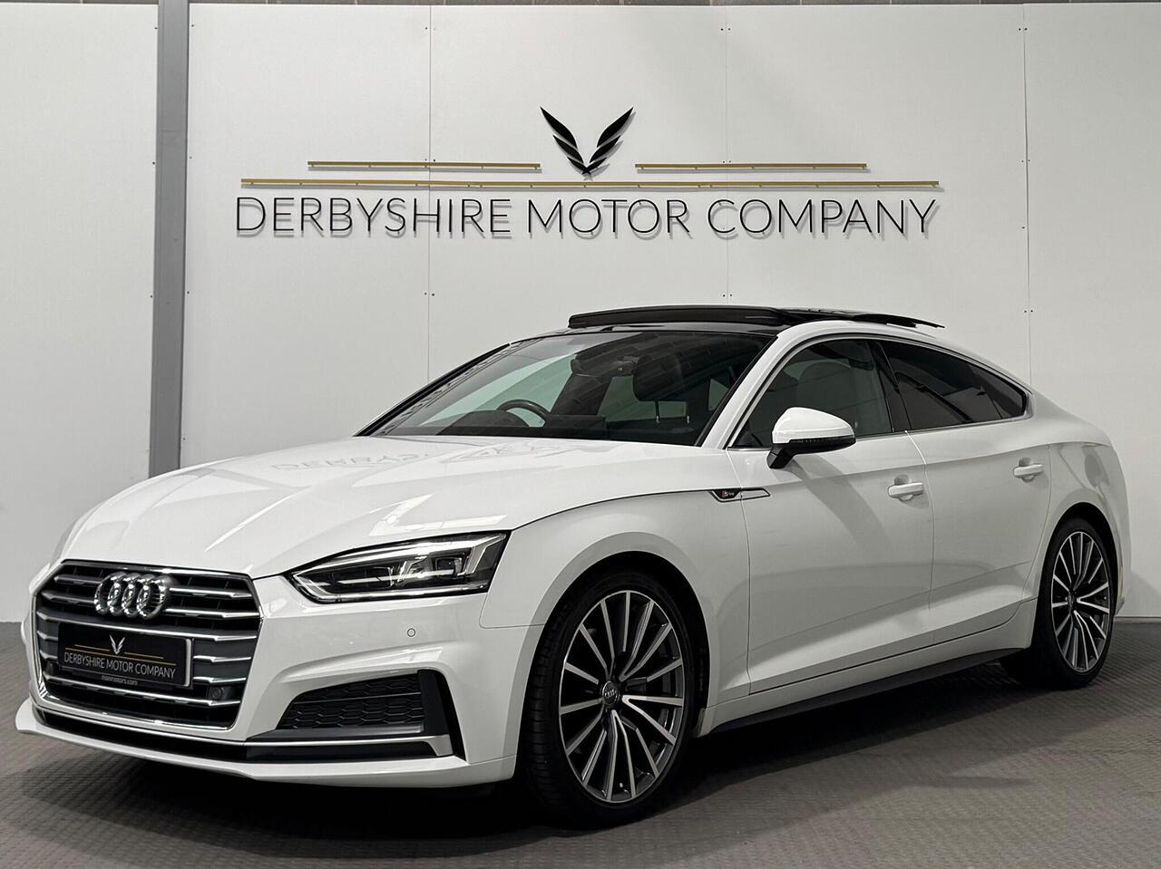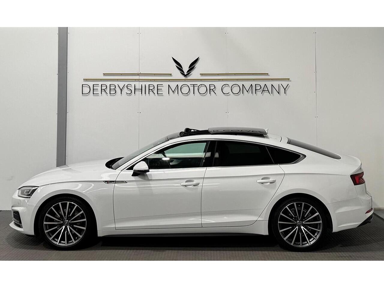 Derbyshire Motor Company offering for sale this Audi A5 S Line Sportback Finished in Glacier White. The vehicle presents a full service history and boasts a lovely specification; Panoramic Sunroof, 19 inch Bi Colour Alloys, Technology Package - Sat Nav, Virtual Dash, Half Black Leather Heated Seats, Privacy Glass, DAB Radio, Front and Rear Park, Wireless Charging Dock, Cruise Control, Power Boot, Powerfold Door Mirrors, 2 Keys. All our vehicles undergo a full mechanical inspection. Furthermore, We welcome any independent inspection of the vehicle. RAC warranty and roadside assistance will be provided with the vehicle. All part exchanges are welcome. Please do not hesitate to contact us for a full personalised video. Please book an appointment so we can welcome you to our indoor showroom. Furthermore, for a personalised finance quote or to discuss our extended warranties, please contact the team at Derbyshire Motor Company.