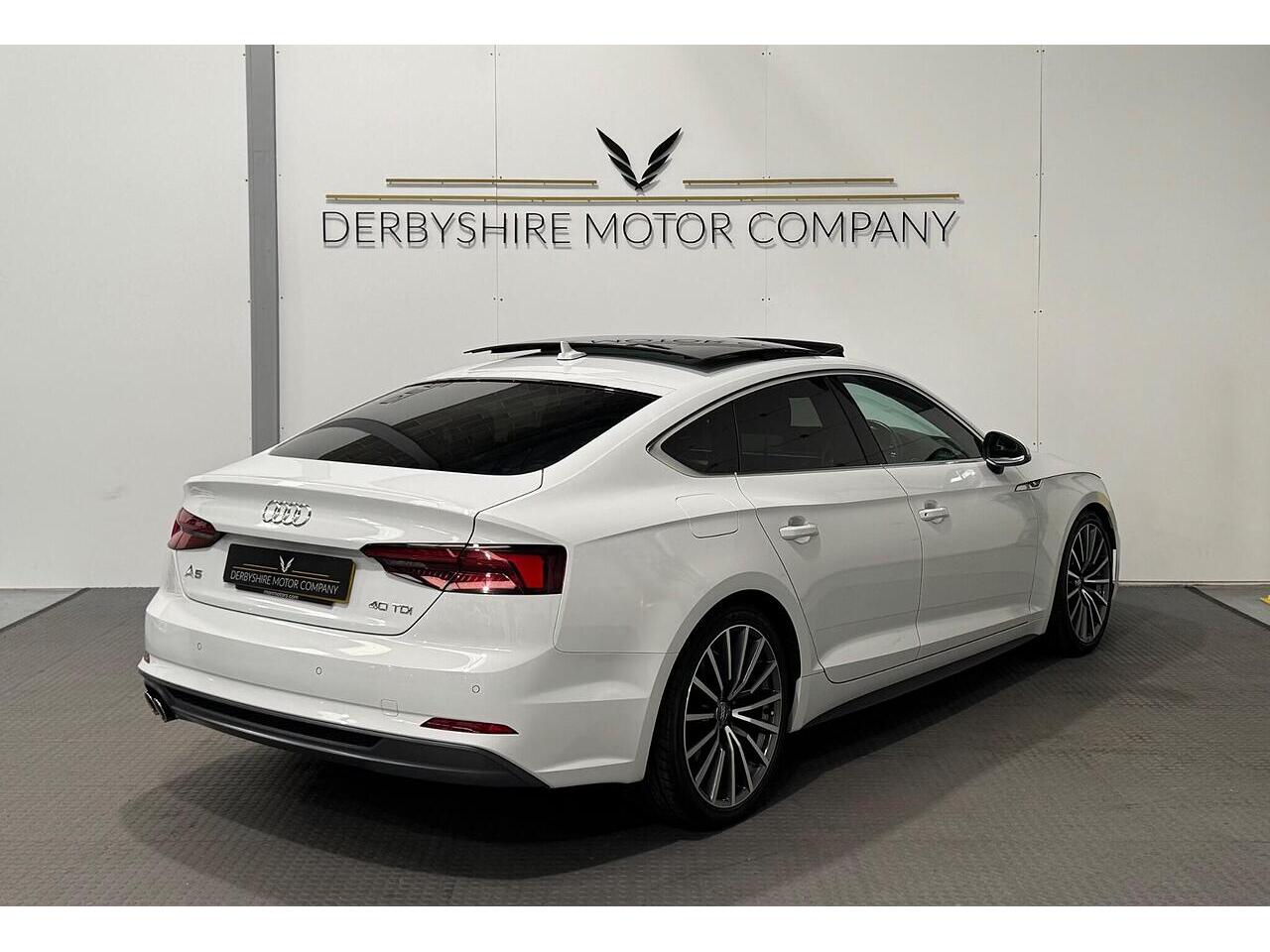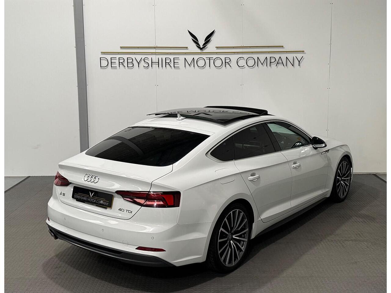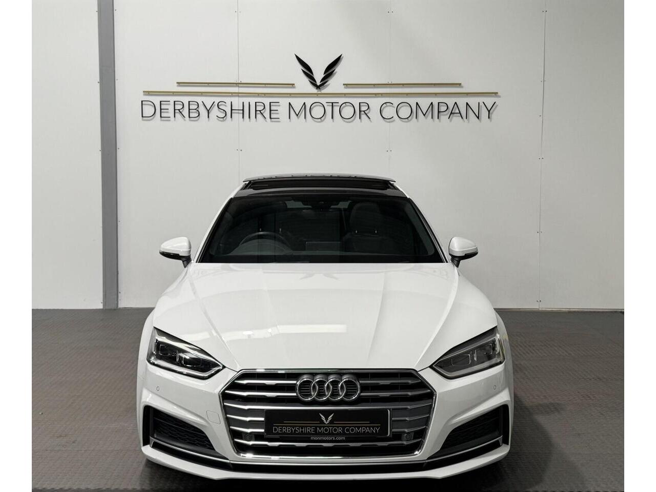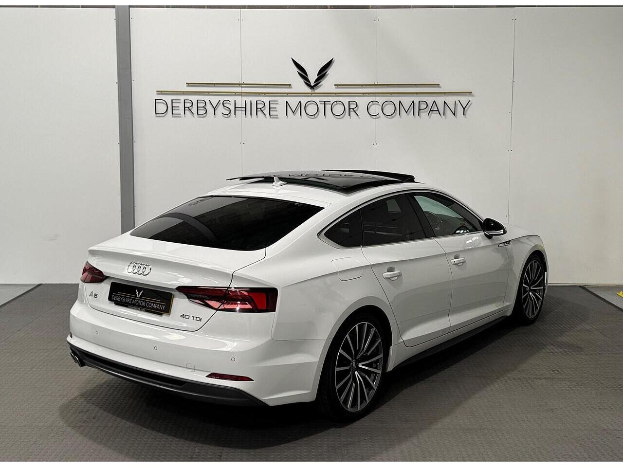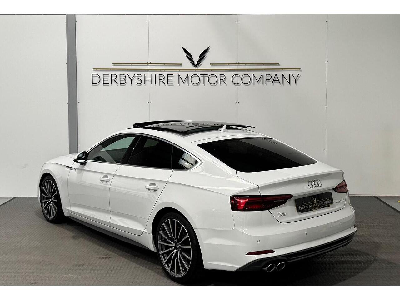 Derbyshire Motor Company offering for sale this Audi A5 S Line Sportback Finished in Glacier White. The vehicle presents a full service history and boasts a lovely specification; Panoramic Sunroof, 19 inch Bi Colour Alloys, Technology Package - Sat Nav, Virtual Dash, Half Black Leather Heated Seats, Privacy Glass, DAB Radio, Front and Rear Park, Wireless Charging Dock, Cruise Control, Power Boot, Powerfold Door Mirrors, 2 Keys. All our vehicles undergo a full mechanical inspection. Furthermore, We welcome any independent inspection of the vehicle. RAC warranty and roadside assistance will be provided with the vehicle. All part exchanges are welcome. Please do not hesitate to contact us for a full personalised video. Please book an appointment so we can welcome you to our indoor showroom. Furthermore, for a personalised finance quote or to discuss our extended warranties, please contact the team at Derbyshire Motor Company.